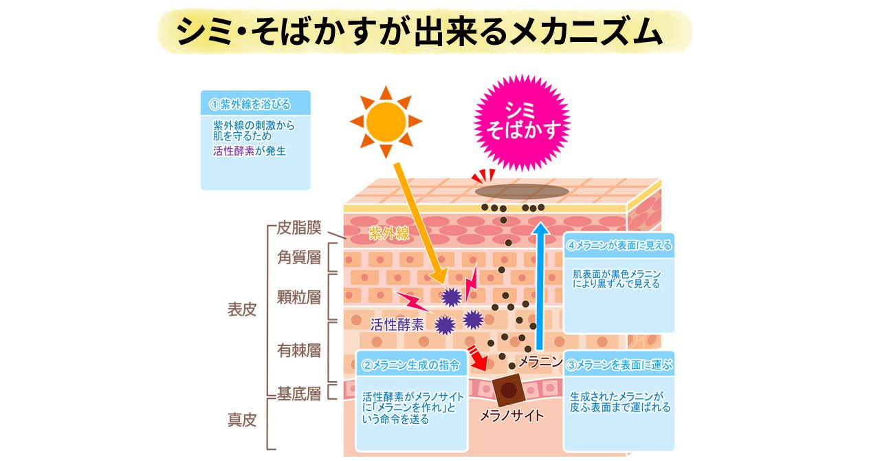 続いて、シミ・そばかすが出来るメカニズムを見ていきましょう!